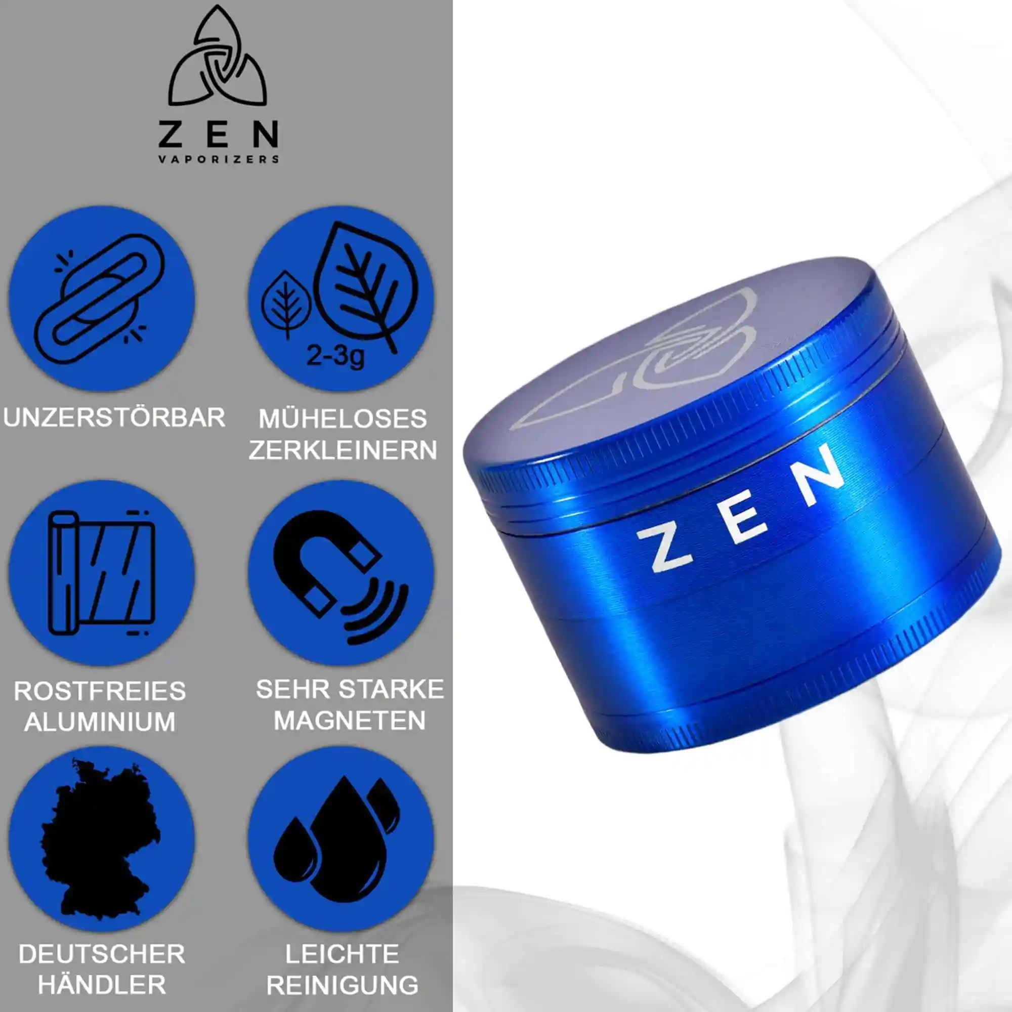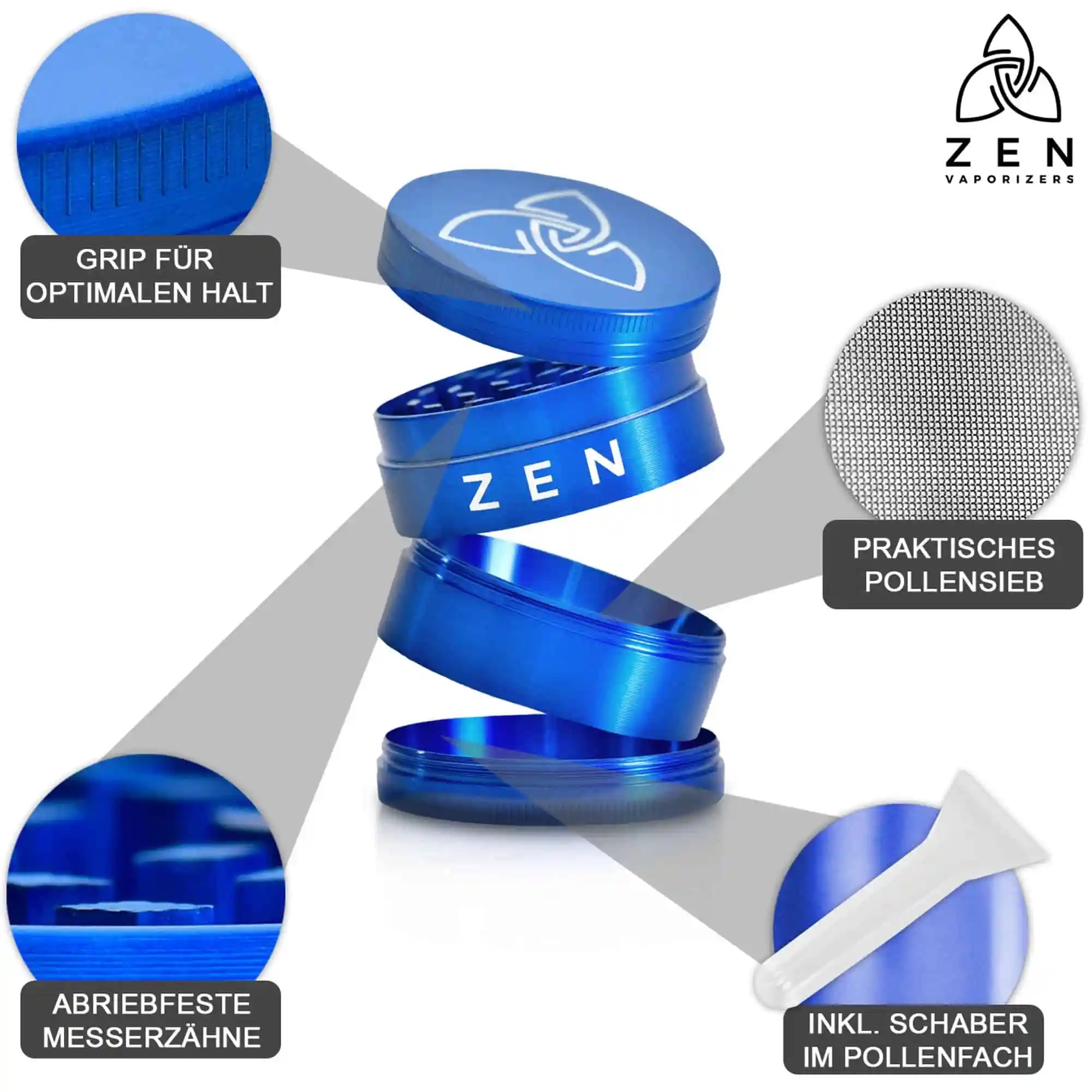 ZEN Vaporizers Grinder Basic blau 49mm