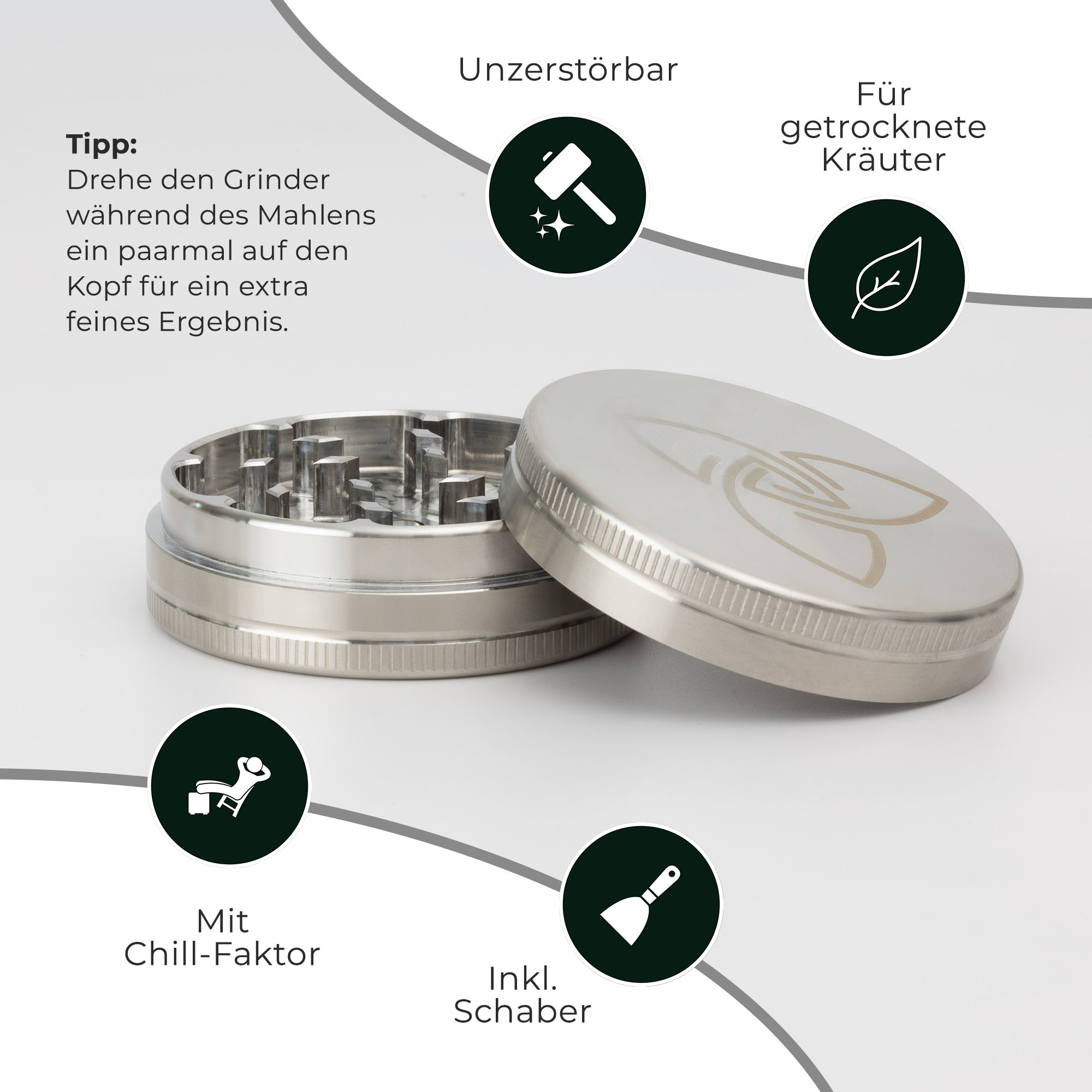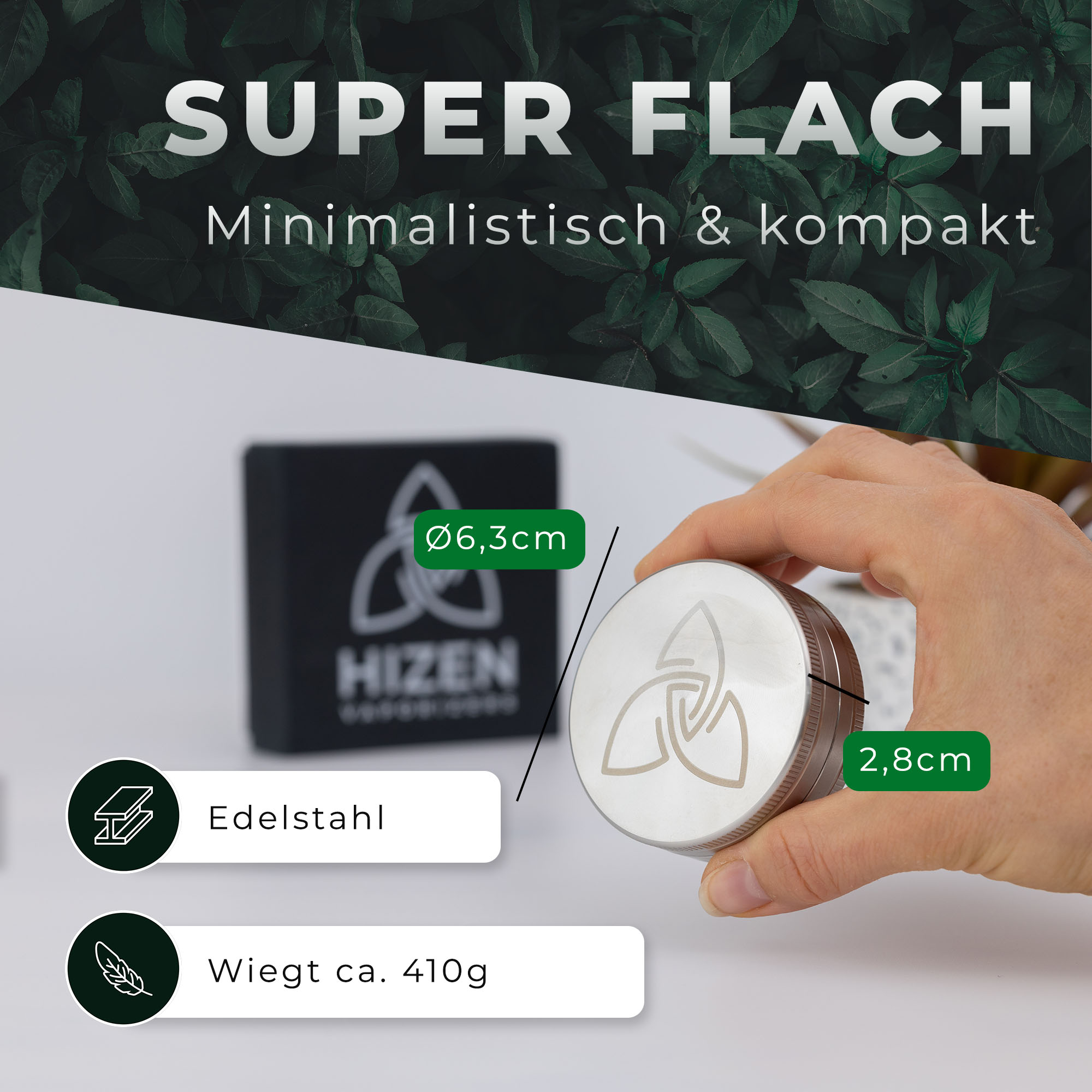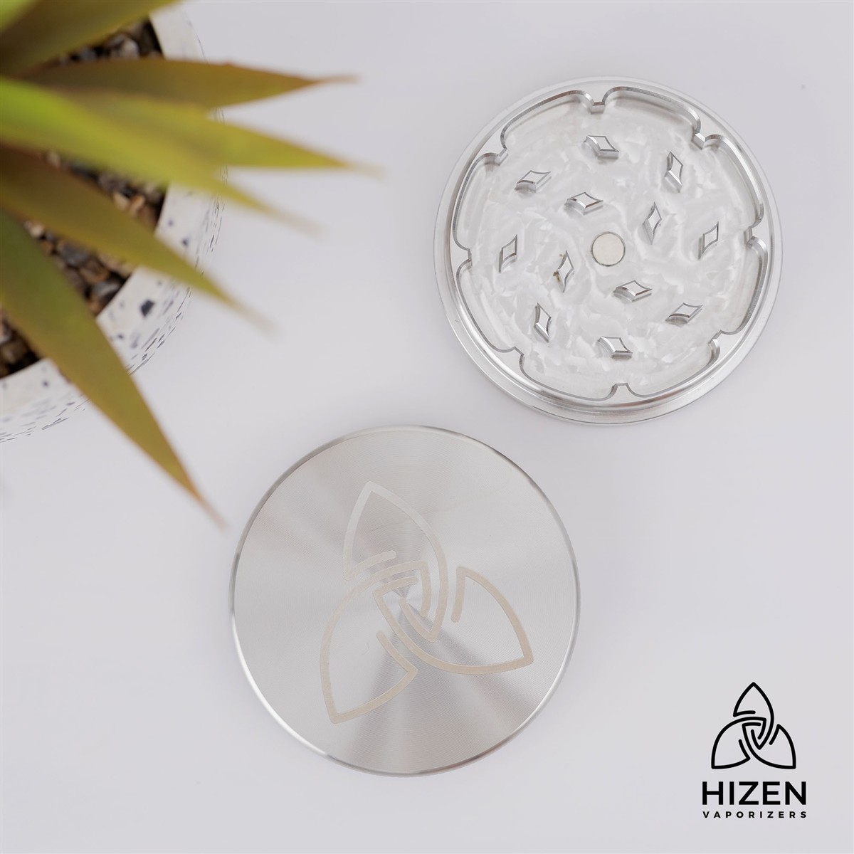 HIZEN Vaporizers Grinder Edelstahl 2-teilig, 63mm glänzend