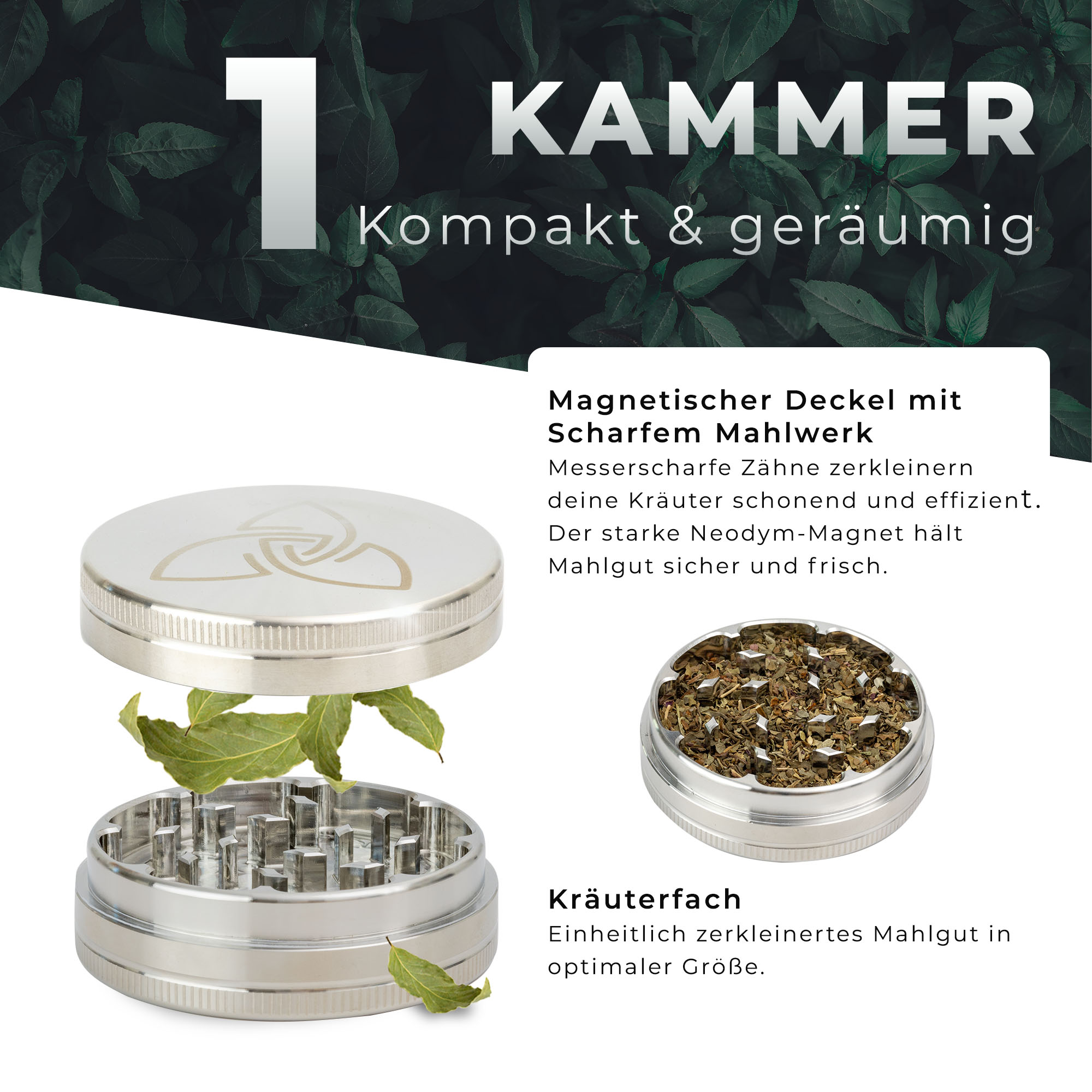 Es passt ca. 1,5g Kräutergut in die Kammer, abhängig von eurem Material
